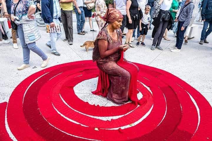 A Zizi trabalha na área das estátuas vivas/performances. A sua paixão pelos fios, lãs, cores e croché levou-a ao seu projecto “TECEDEIRA DE MIM“, em que esta “estátua” vai tecendo uma peça infinita de croché.